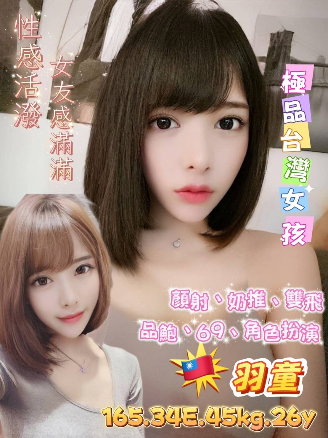 🔵服務項目:無套吹/共浴/小親親/舌吻/69/品鮑/奶推/親胸/角色扮演/親私密處/毒龍/